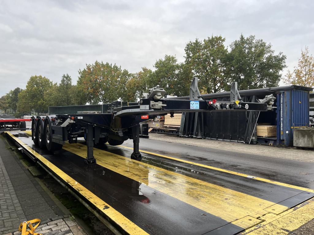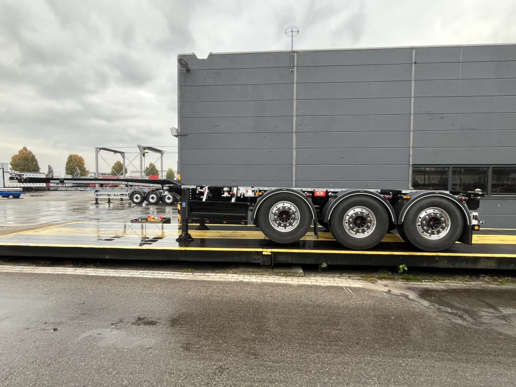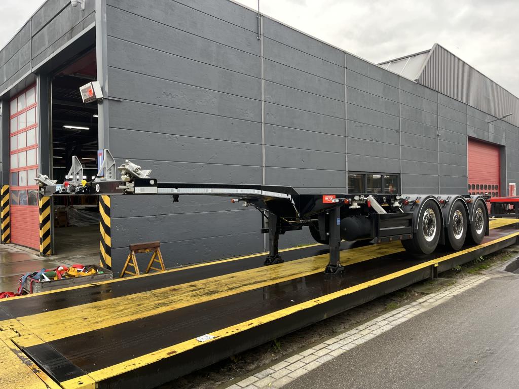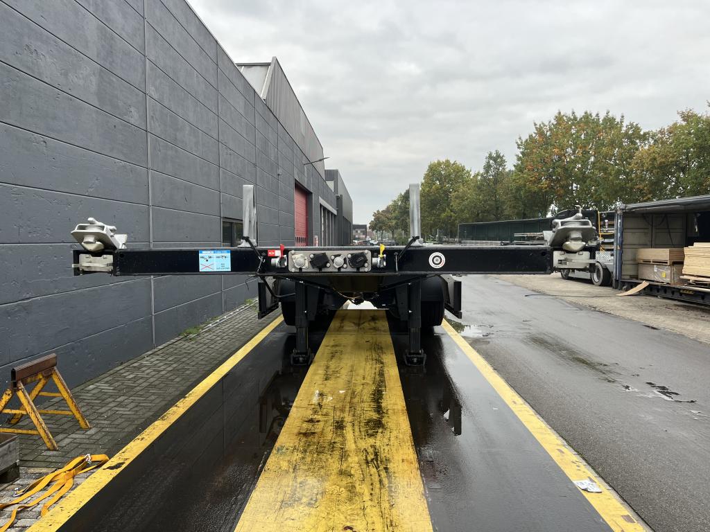uitschuifbaar containerchassis t.b.v. vlakke of tunnelcontainer 1x20 Ft.achterop,1x20Ft.centraal, 1x30 Ft., 2x20 Ft., 1x40 Ft.,1x45 Ft.