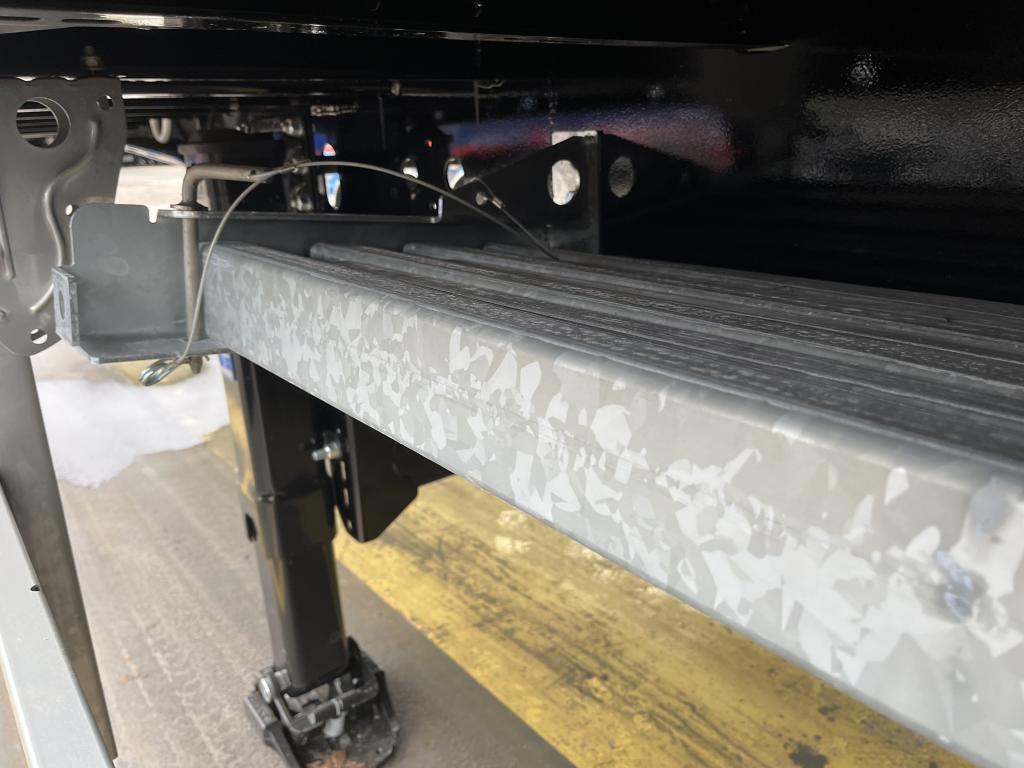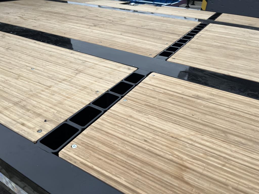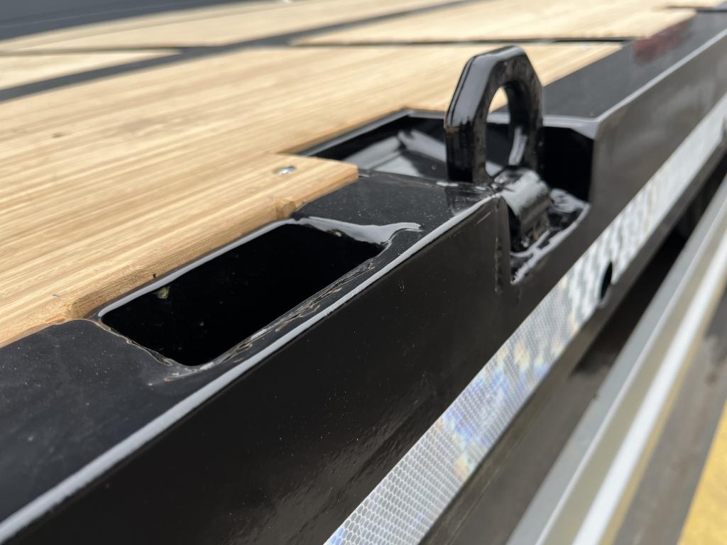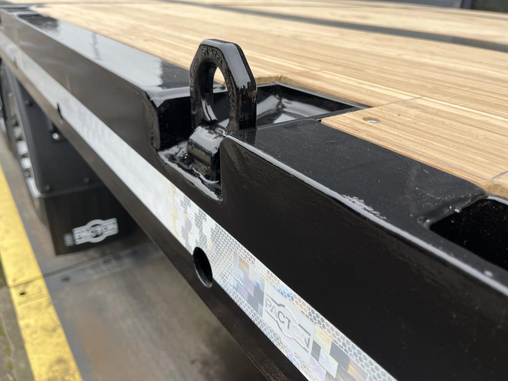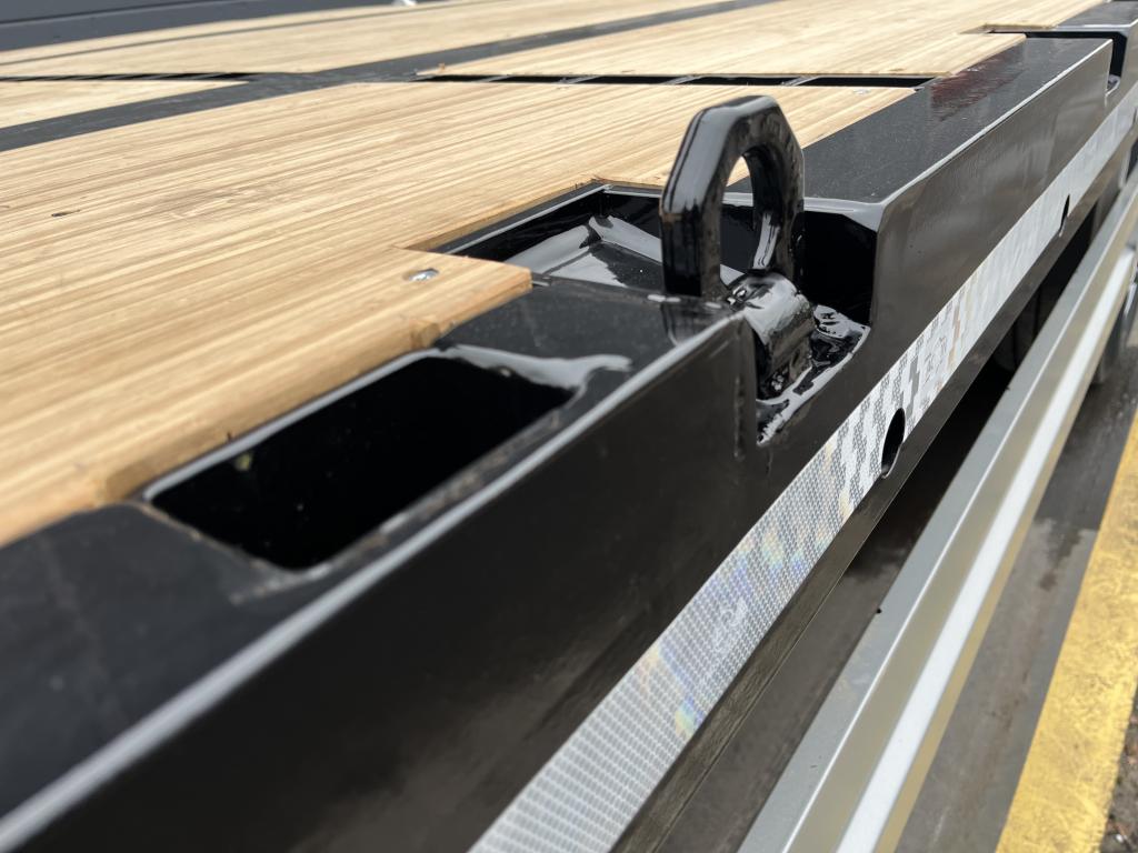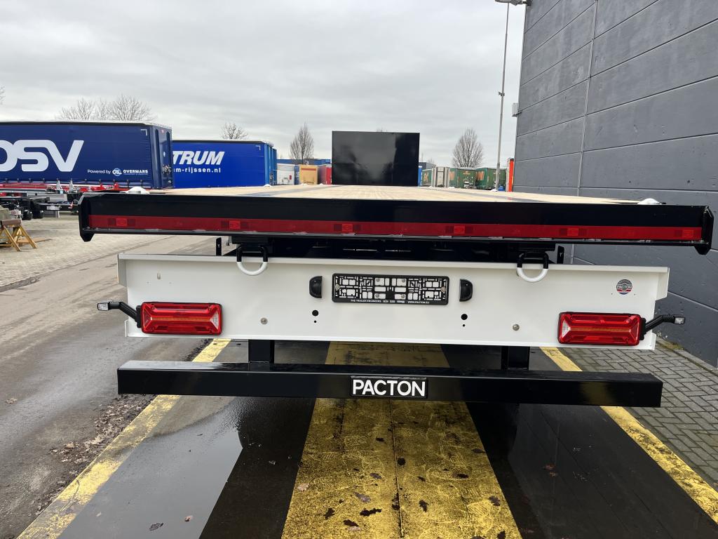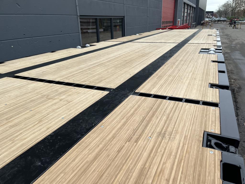 Oplegger is volledig geschoopeerd 12 twistlocks 4 rongenrijen overdwars 2x10 ronggaten in de zijrand Bindoog gaten in zijrand 2x13 8-tons bindogen klapbaar, in de zijrand. 16 losse rongen L= 1245 mm. SAF schijfremmen A-merk banden 385/65 R22.5 Bamboo vloer Volledig voorzien van LED verlichting Actieve knipperlichten