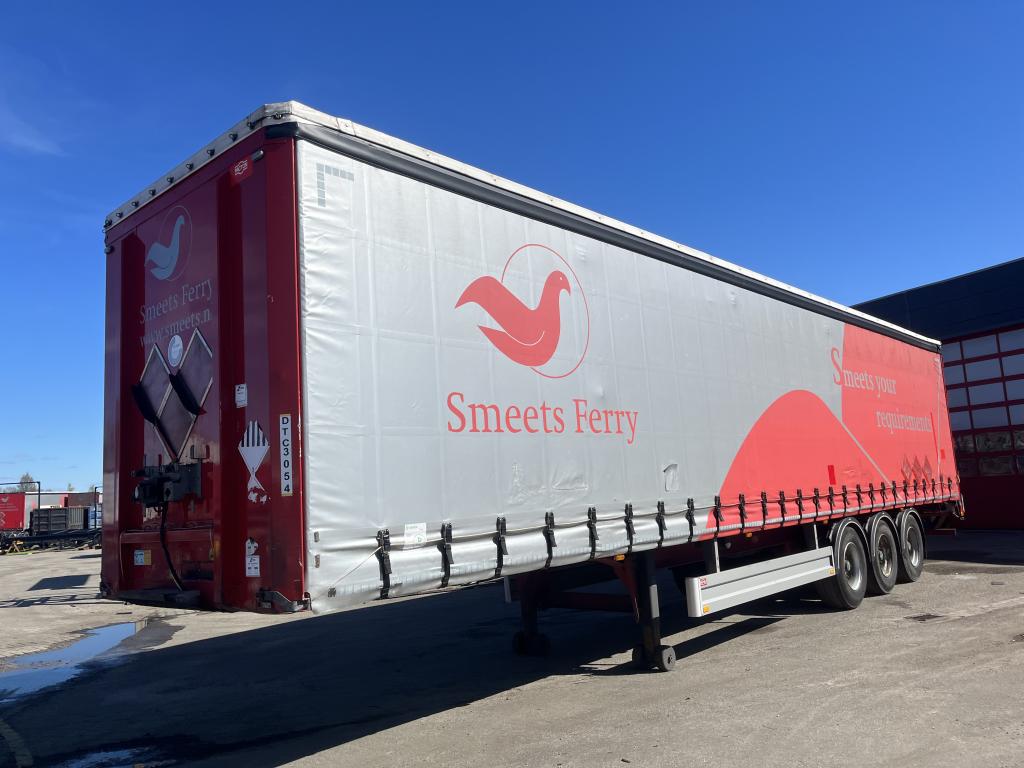Aluminium zijborden 400mm hoog Aluminium huifplanken Hardhouten vloer Valx trommelremmen TÜV certificaat 32 ton Schuifdak Documentenkoker Wielkeggen 2 x 4 schuifrongen op vaste positie Ferryogen 2 x 4 stuks Bindhaken in de zijrand 2 x 30 stuks (2.000 kg per stuk) Sterke zijranden Verzinkte vloerplaat op achterste deel hardhouten vloer ADR bord op achterdeur A-bord op achterdeur
